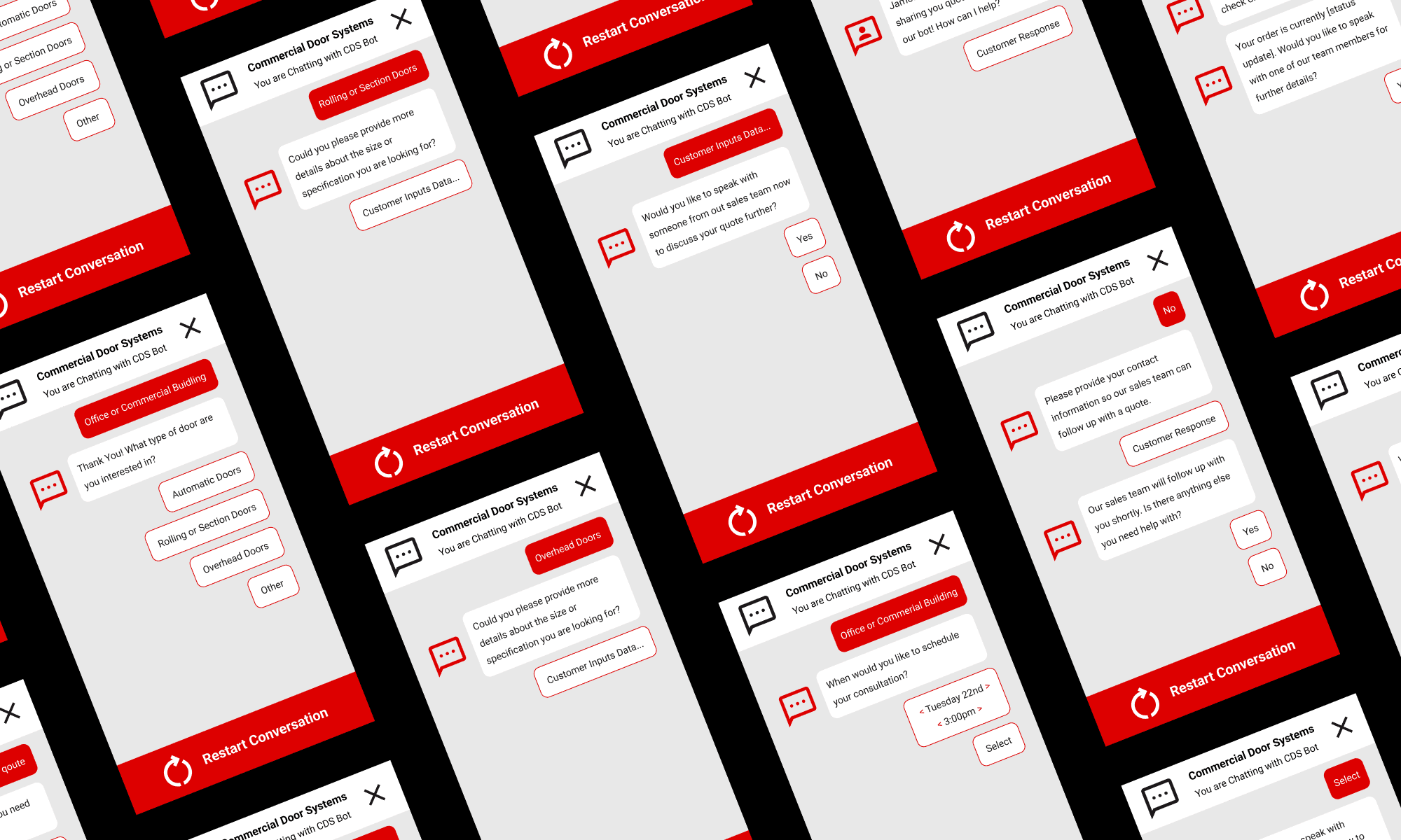 Following implementation, the chatbot became a reliable entry point into the sales funnel, generating over 150 qualified leads and contributing to a measurable improvement in conversion efficiency. Over the course of a year, Commercial Door Systems reported an estimated 11% year-over-year revenue increase influenced by chatbot-driven inquiries, alongside a noticeable reduction in time spent handling unqualified calls. Sales representatives were able to start conversations further along in the buying process, focusing on solutions rather than basic fact-finding. This project demonstrated how thoughtful UX strategy, applied to sales enablement rather than surface-level UI changes, can directly improve operational efficiency, customer confidence, and revenue outcomes.